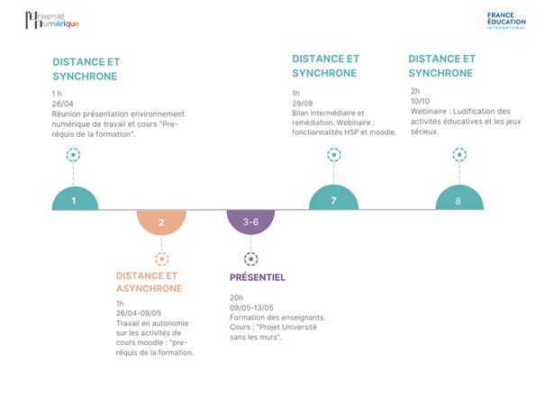 ➤ 6 jours de formation synchrone des enseignants des composantes / reprise des contenus de la formation L’UN/FEI et adaptation de ces derniers, dont ajouts d’éléments spécifiques